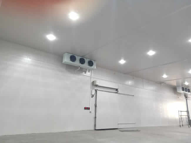 2、保温板材:保温板材是对低温冷库保温性能起到了决定性的作用,冷库保温板的选择直接影响后期使用的用电量,保温板材通常有聚氨酯保温板与聚苯乙烯保温板,还可现场喷涂,我们通常建议使用聚氨酯保温板,因为此保温板保温性能好、经久耐用、有阻燃等优势。